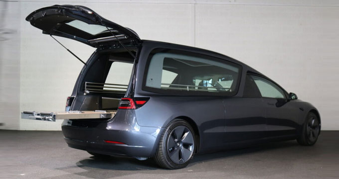 Tesla Model 3 diventa un carro funebre 100% elettrico grazie a una conversione.