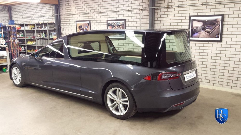 Una carrozzeria olandese, la RemetzCar di Lisse, ha risolto il problema dei cortei funebri nelle zone a traffico limitato creando una Tesla Model S in versione carro funebre.