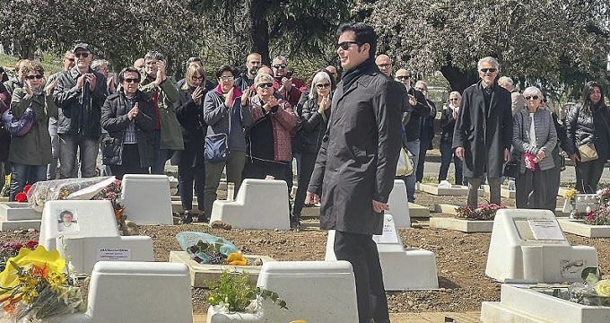 All’ingresso del cimitero vi sono altre 300 persone che all’arrivo del carro funebre si raccolgono in un lungo momento di silenzio per poi proseguire in corteo fino al luogo della sepoltura. Una donna alza uno smartphone al cielo: la musica degli Statuto accompagna la discesa nella tomba del feretro. Nella commozione generale parte un lunghissimo applauso.