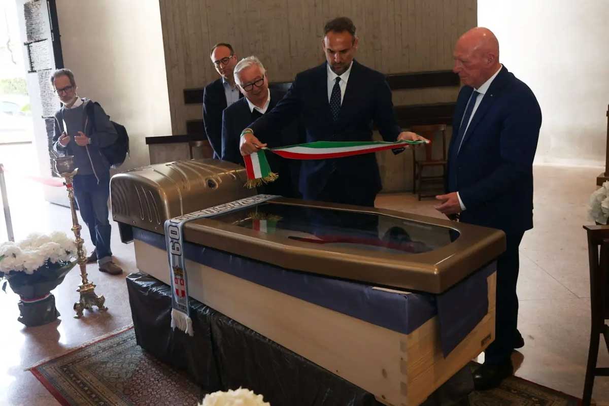 Alle 10 di martedì 29 aprile la bara in legno chiaro, adornata con una fascia tricolore, fiori e una sciarpa del Treviso Calcio, è stata collocata nell’atrio del Municipio di Treviso.