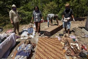 É il rituale che si tiene ogni tre anni, da oltre un secolo, nell’isola Sulawesi per mostrare rispetto ai propri cari deceduti. La tribù riesuma i corpi, li lava, li abbellisce e posa per foto di famiglia nel festival chiamato Ma’nene. Il funerale è un evento fondamentale della comunità, a volte qui le persone lavorano tutta la vita solo per mettere da parte i soldi e potersene permettere uno “rispettabile”. Ma il funerale non è il saluto definitivo alle salme. Ogni tre anni i corpi sono ripuliti e le bare rinnovate. Si fa tutto ciò che serve per evitare la decomposizione. I Toraja non credono che la morte sia la fine, solo un passo verso una vita in spirito. Il funerale accompagna la transizione, perciò è molto elaborato, e può durare una settimana. Lo spirito dei morti deve poter ritornare al villaggio, perciò è importante tenere il corpo nel luogo di origine. Quando, raramente, un Toraja muore lontano dal villaggio, i suoi cari si avventurano alla sua ricerca e il corpo viene riportato qui.